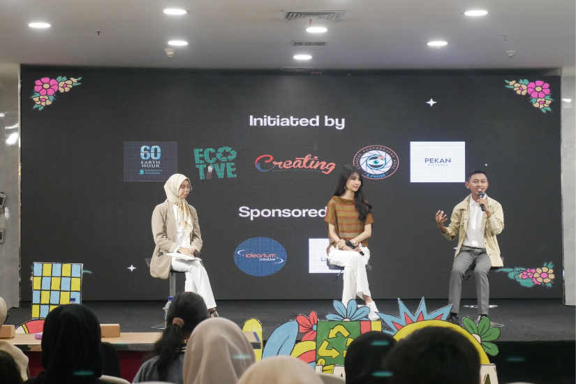 Rangkaian acara juga diisi dengan talk show yang menghadirkan narasumber profesional di bidang lingkungan. Cynthia, Duta Earth Hour sekaligus Miss Global Indonesia 2023, dan Amang Regi, Duta Inspirasi Jawa Timur 2023, berbagi pengalaman serta pandangan mengenai kepedulian terhadap bumi.