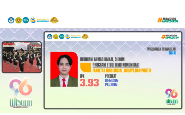 Pada periode ini, Program Studi Ilmu Komunikasi turut menorehkan prestasi melalui mahasiswanya, Herdhani Ahmad Haikal (angkatan 2021), yang dinobatkan sebagai wisudawan terbaik program studi. Herdhani menulis skripsi berjudul “Strategi Diskominfo Sidoarjo dalam Membangun Citra Smart City” di bawah bimbingan Farikha Rachmawati, S.I.Kom., M.I.Kom.